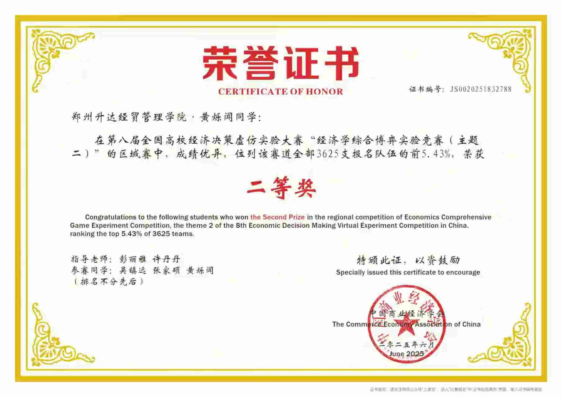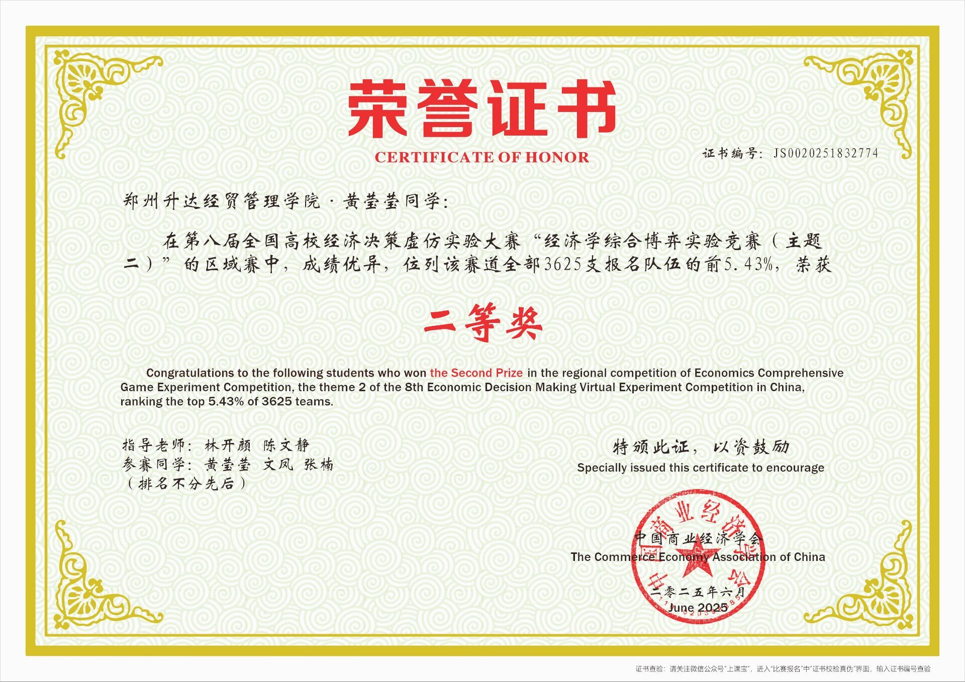 此次全国高校经济综合博弈大赛的优异成绩,再次印证了我校在经济学教育和人才培养方面的显著成效。未来,我校将继续秉承“以赛促学、以学促用”的理念,进一步优化课程体系,加强师资队伍建设,为学生提供更多展示自我、挑战自我的机会,助力学生成长成才,为社会输送更多优秀的经济管理人才。