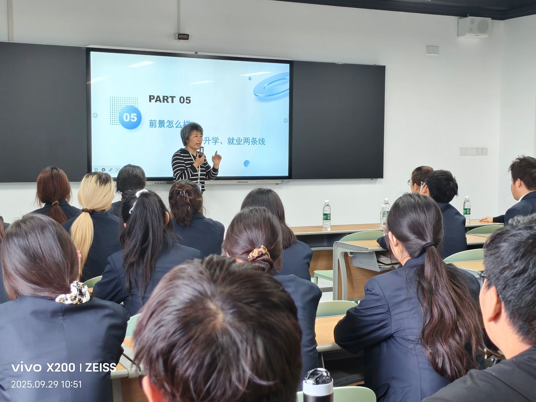 在“学什么”与“未来怎么走”的关键环节,李老师分别针对本科、专科新生的培养目标,清晰呈现课程体系与发展路径,从就业、深造两条主线为新生定制了“成长行动指南”。