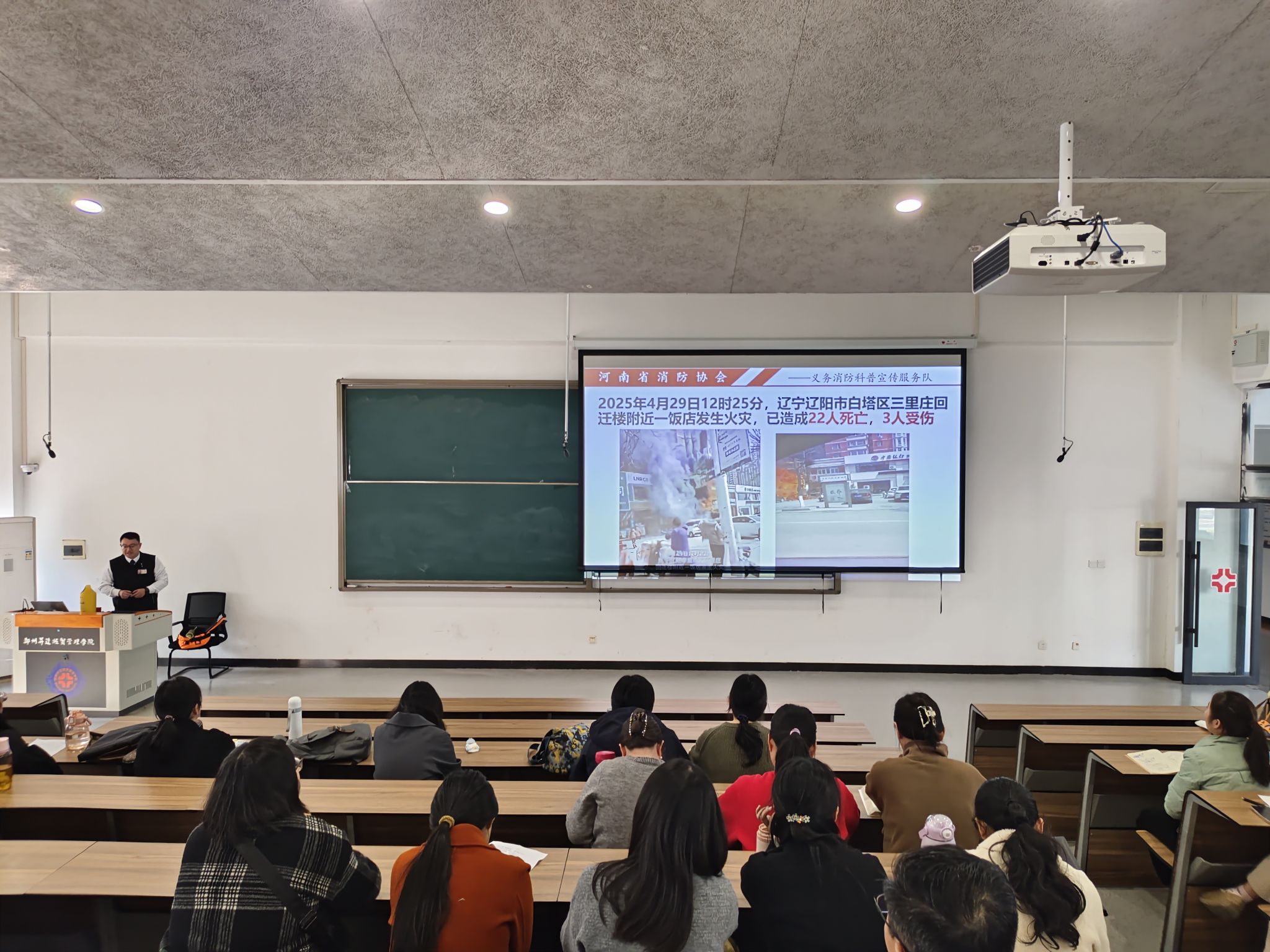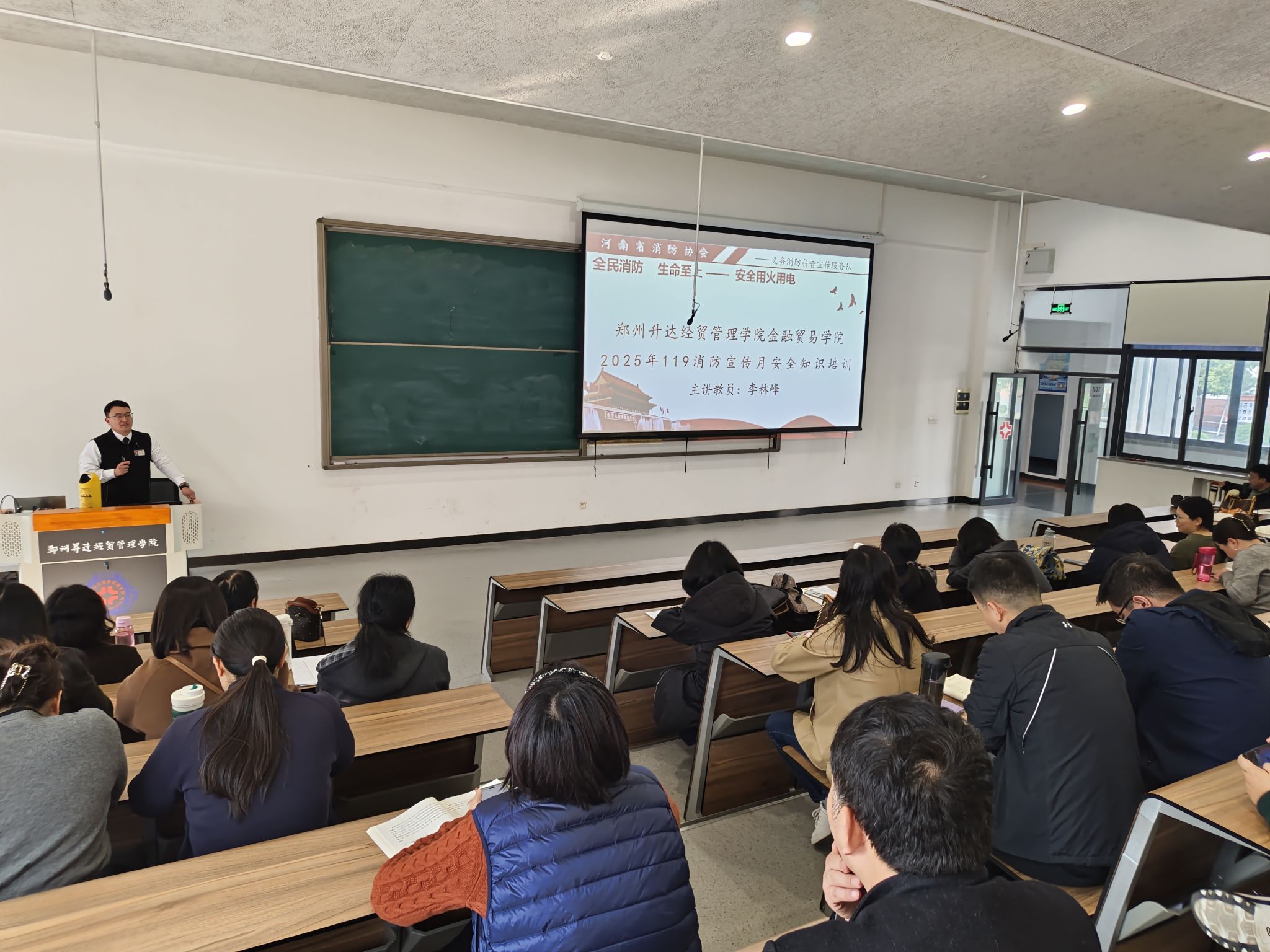 为强化师生消防安全理论认知与应急技能,防范校园火灾风险,11月13日,金融贸易学院邀请河南省消防协会义务消防科普宣传服务队李林峰教员进行宣讲,以“全民消防、生命至上——安全用火用电” 为主题,开展师生消防安全知识培训活动,全院100余名师生代表现场参与学习。
