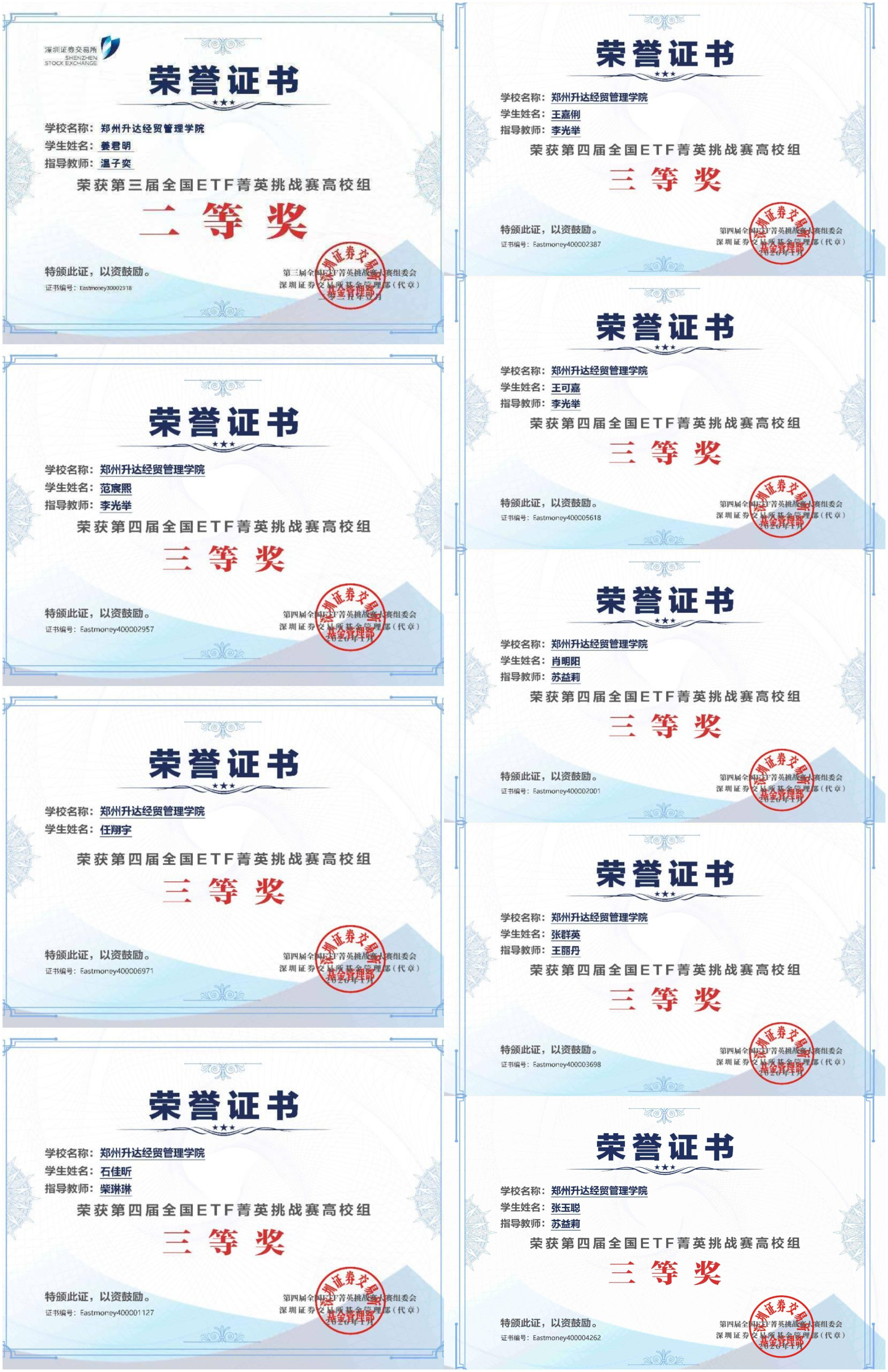 为全面提升金融专业人才质量,培养高素质创新实践技能人才,金融贸易学院积极组织学生参加第四届“全国ETF菁英挑战赛”,21名学生在李光举、柴琳琳、温子奕、苏益莉等教师的精心指导下,凭借出色的投资分析能力和稳健的风险控制策略,最终获得二等奖1项、三等奖8项,充分展现了我院学子扎实的专业功底与出色的实践能力。
