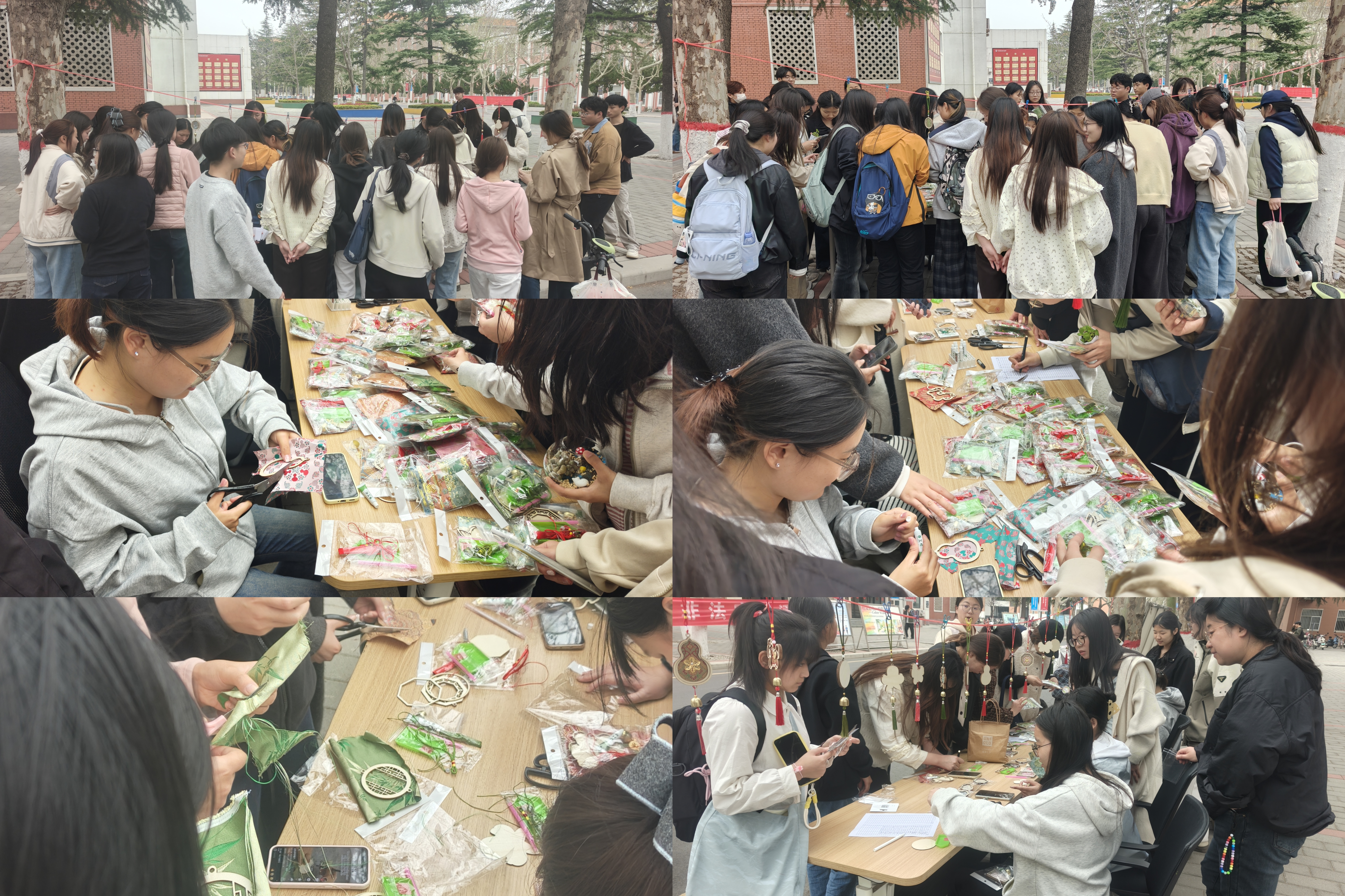 手工制作环节,现场氛围轻松愉悦。同学们分组协作,手持宋锦材料,凝神专注地投入创作,穿针引线间,将春日的美好意象与心中的期许融入作品之中。社团志愿者巡回指导,悉心帮助动手能力较弱的同学,鼓励大家发挥创意,添加个性化装饰,让每一件风铃都成为独一无二的心灵寄托。在指尖的灵动操作中,同学们暂时放下学业的疲惫与生活的焦虑,沉浸在创作的乐趣里,感受非遗文化的独特魅力,实现了身心的双重放松。