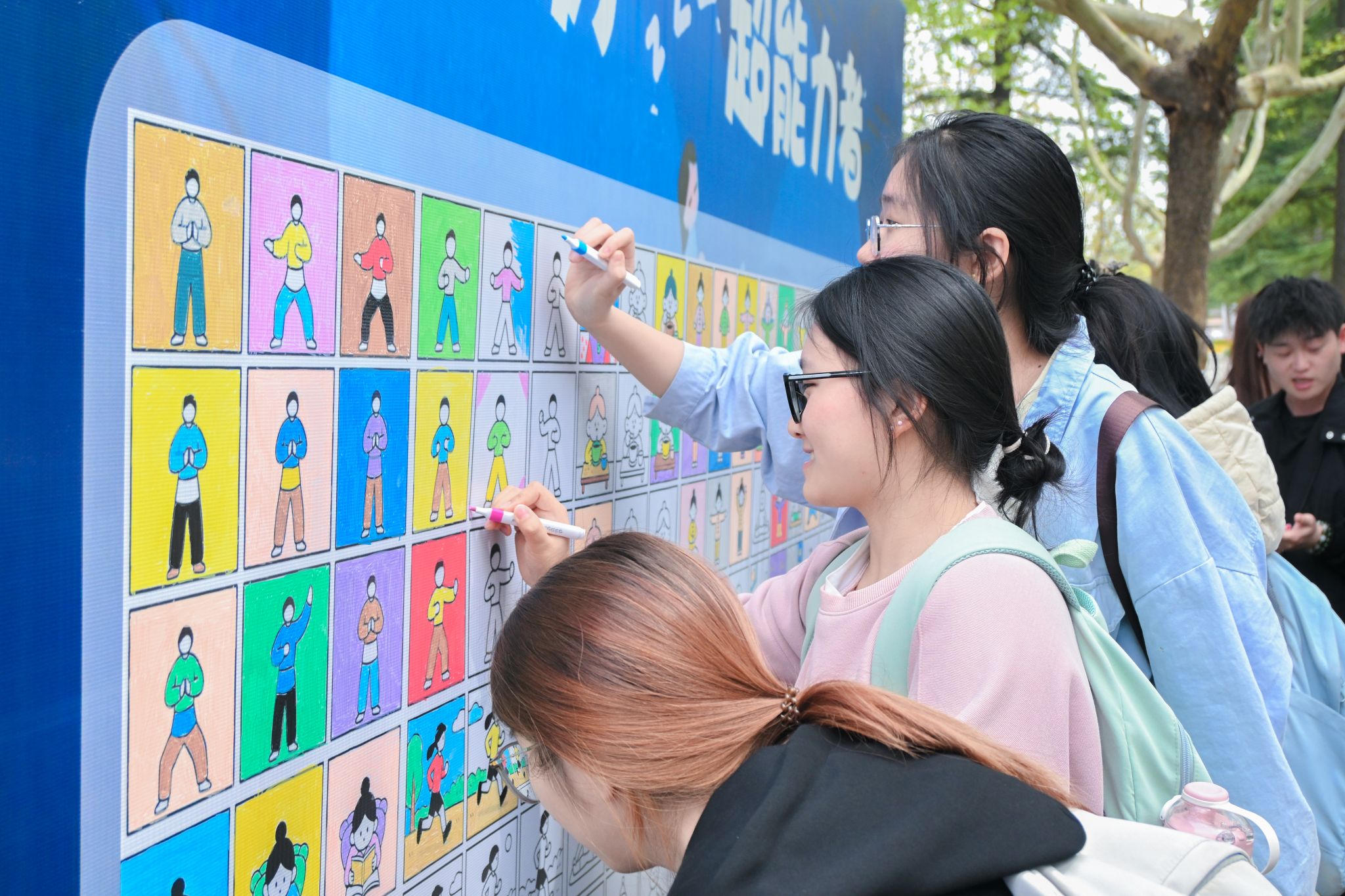 在活动现场,“好眠画卷”桁架上面勾勒着跑步、八段锦、读书、好眠等画面,同学们争相填色,用画笔表达对健康生活的向往。另一侧的“睡眠知识互动答题”区更是排起长龙,答对题目即可领取助眠小礼品,大家在欢声笑语中记住了“蓝光如何影响褪黑素”“运动为什么能助眠”等实用知识点。
