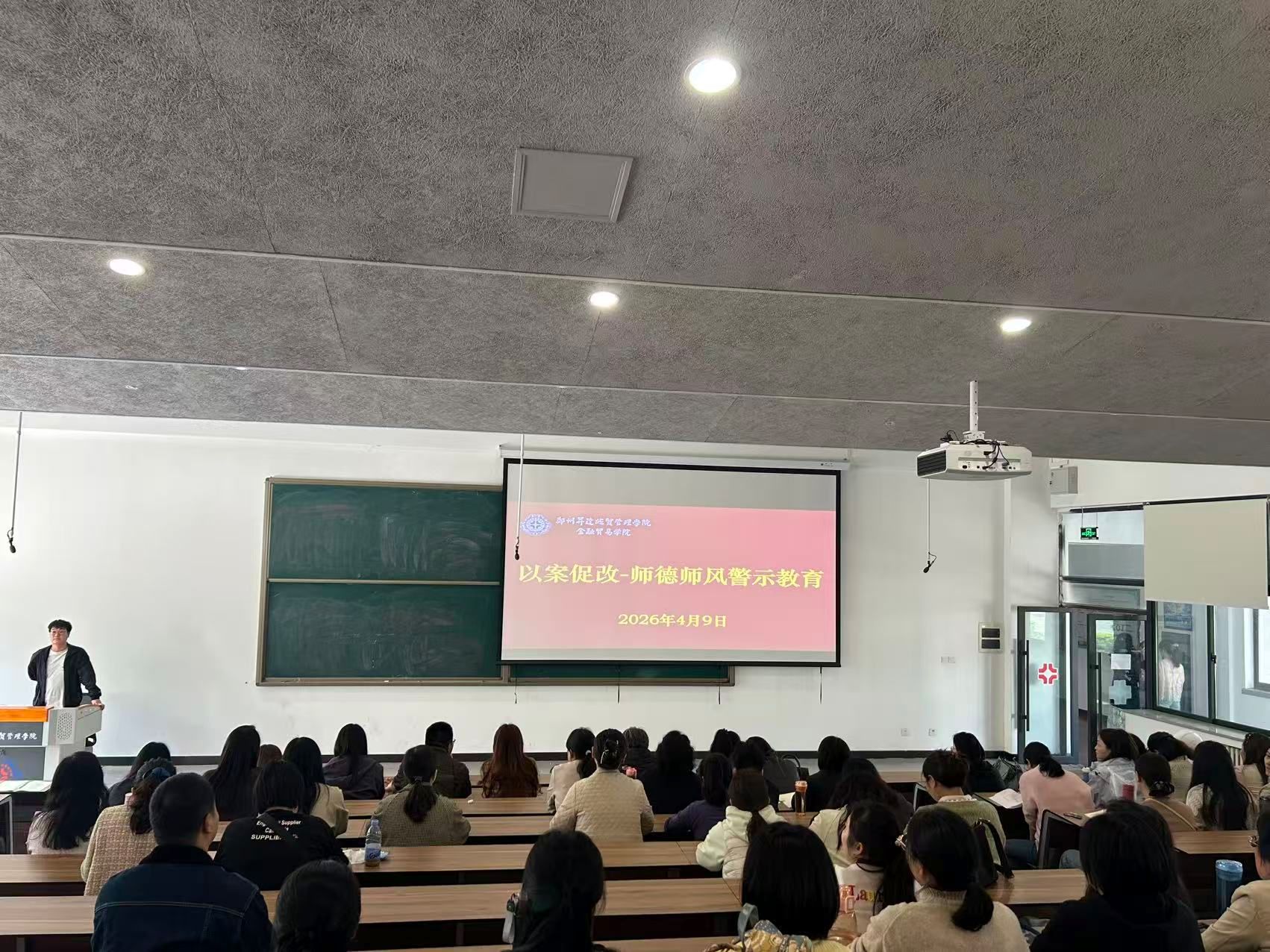 为深入推进师德师风建设,强化教职工纪律意识和廉洁自律防线。4月9日,金融贸易学院在3-107教室组织全体教职工开展以案促改-师德师风警示教育活动,引导全体教职工以案为鉴、警钟长鸣,坚守教育初心、恪守师德底线。