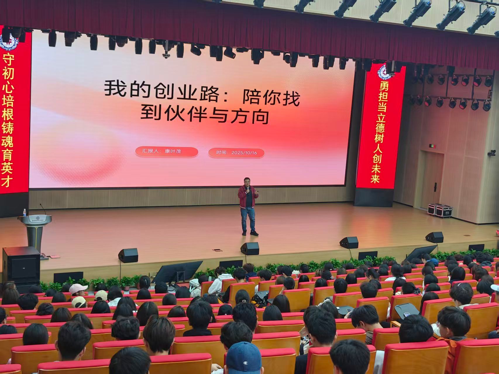 为了帮助2025级新生更快适应大学生活,科学做好学业规划与职业发展规划,搭建新生与优秀校友交流桥梁,凝聚校友力量为新生成长赋能,10月16日下午,金贸学院邀请我院优秀校友,河南康康食品有限公司董事长康叶茂重返校园,为2025级新生带来主题为“我的创业路:陪你找到伙伴与方向”的大学第一课。