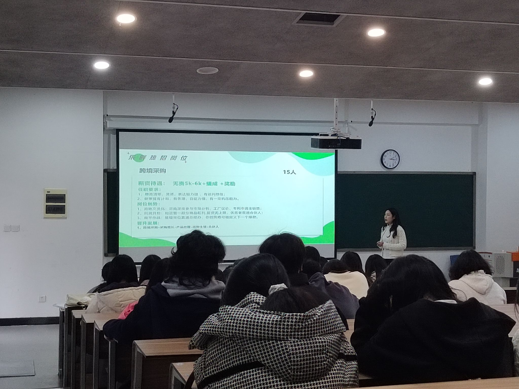 乐畔电子商务公司的负责人向同学们介绍了公司的发展历程、业务范围以及在行业内的领先地位。从最初的创业探索到如今的蓬勃发展,乐畔电子商务凭借创新的商业模式、优质的产品服务以及强大的技术实力,在竞争激烈的电商市场中脱颖而出,成为行业的佼佼者。同时乐畔电子商务公司明确表示,随着业务的不断拓展,他们急需大量具备创新思维、数据分析能力和良好沟通能力的复合型电商人才。公司代表详细介绍了各类电商岗位的职责和要求,包括电商运营专员、市场推广专员、数据分析专员等,并强调了持续学习和自我提升在电商职业发展中的重要性。同时,鼓励大家积极投递简历,加入他们的团队,共同开创电商行业的美好未来。