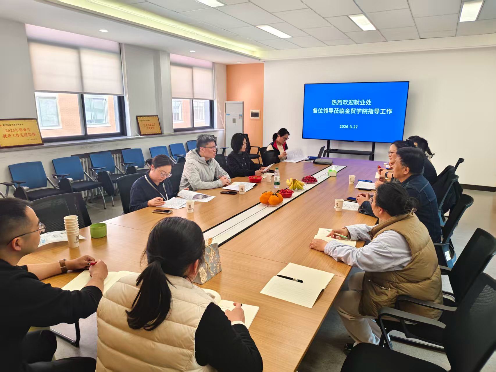 3月27日下午,学校就业处冯科处长一行莅临金融贸易学院开展就业工作专项调研。金贸学院院长何伟、党委书记张小雁、就业专员秦童及全体毕业班辅导员参会,并对调研组的到来表示热烈欢迎,充分彰显学院对毕业生就业工作的高度重视。